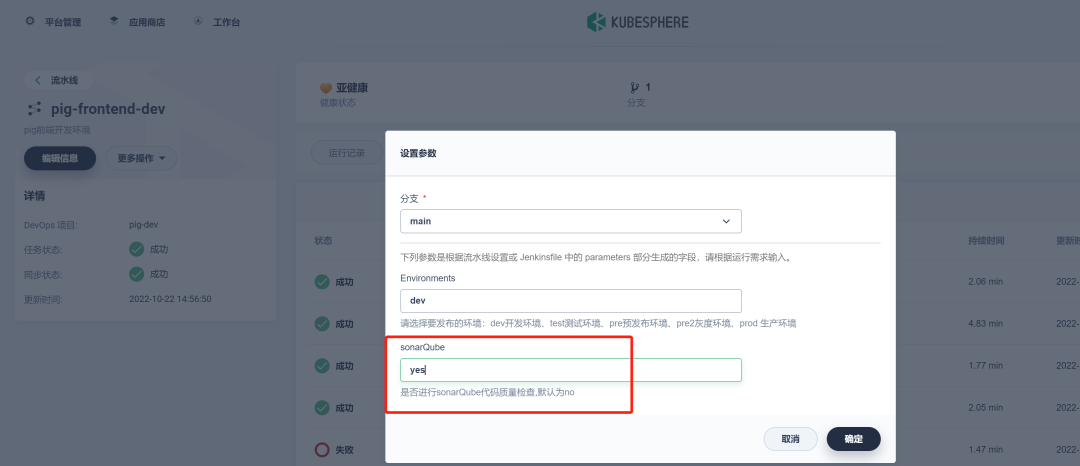 choice(choices: ['no', 'yes'], name: 'sonarQube', description: '是否进行sonarQube代码质量检查,默认为no')