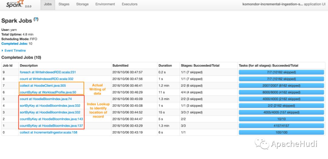 根据异常源(Hudi/Spark),上述关于DAG的信息可用于查明实际问题。最常遇到的故障是由YARN/DFS临时故障引起的。将来,将在项目中添加更复杂的调试/管理UI,以帮助自动进行某些调试。