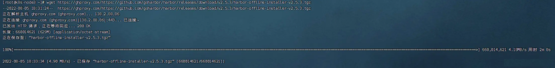 $ wget https://ghproxy.com/https://github.com/goharbor/harbor/releases/download/v2.5.3/harbor-offline-installer-v2.5.3.tgz