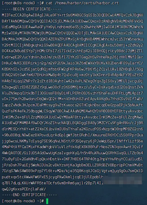 存在在了以下目录 : /home/harbor/certs/harbor.crt。执行命令: