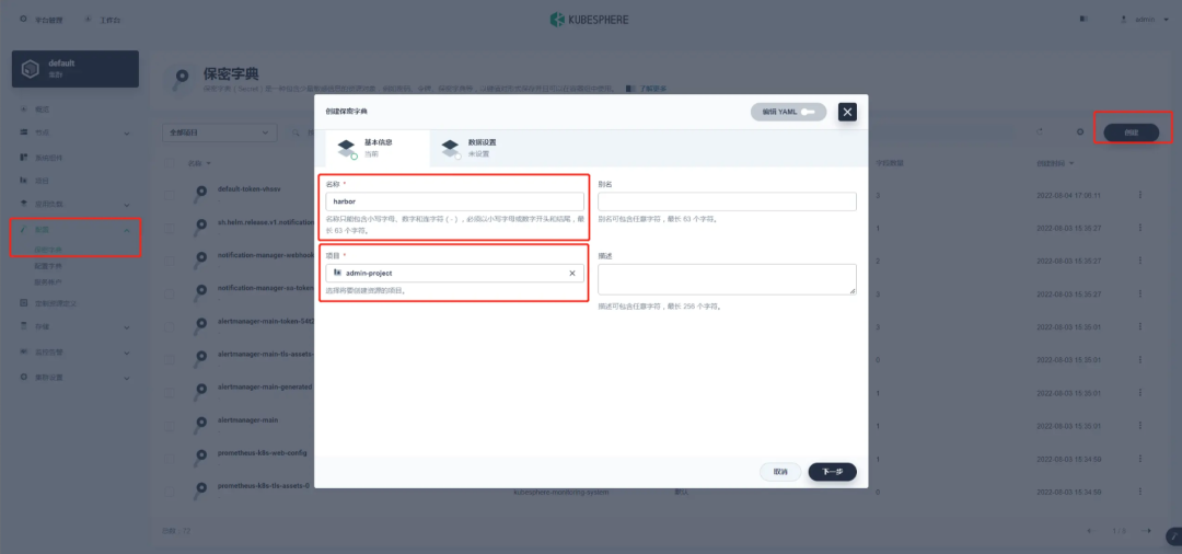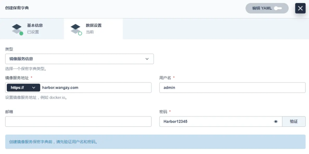 如果只完成上面的步骤没有配置证书时添加 Harbor 对接信息,会提示 证书问题, x509 的错误提示。