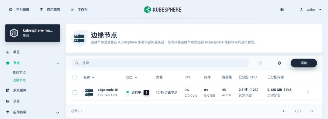 添加边缘节点文档:https://kubesphere.com.cn/docs/installing-on-linux/cluster-operation/add-edge-nodes/