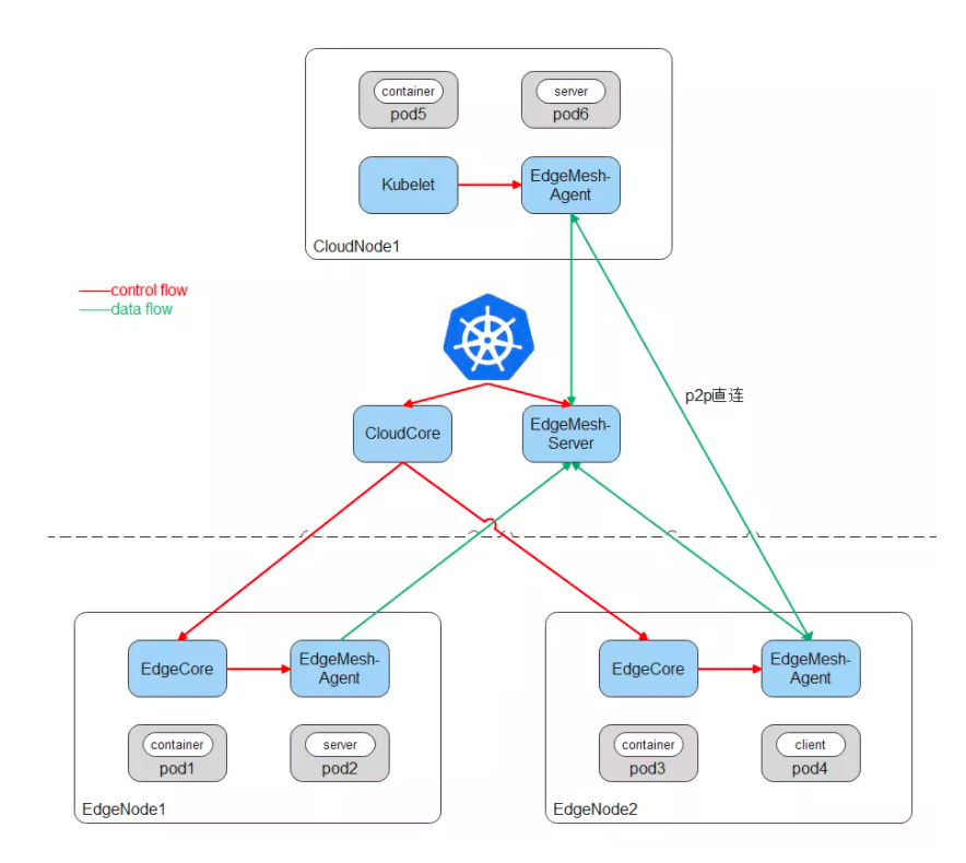 跨子网边边 边云服务通信: 无论应用部署在云上,还是在不同子网的边缘节点,都能够提供通 K8s Service 一致的使用体验。 低时延: 通过 UDP 打洞,完成 EdgeMesh-Agent 之间的 P2P 直连,数据通信无需经过 EdgeMesh-Server 中转。 轻量化: 内置 DNS Server、EdgeProxy,边缘侧无需依赖 CoreDNS、KubeProxy、CNI 插件等原生组件。 非侵入: 使用原生 K8s Service 定义,无需自定义 CRD,无需自定义字段,降低用户使用成本。 适用性强: 不需要边缘站点具有公网 IP,不需要用户搭建 VPN,只需要 EdgeMesh-Server 部署节点具有公网 IP 且边缘节点可以访问公网。