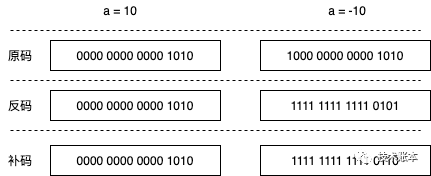 , a 的原码、反码、补码都是 0000 0000 0000 1010