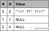 下面我们拿掉其他三个 column 只看 contacts.phoneNumber 这个 column,把上面的两条 record 简化成下面的样子: