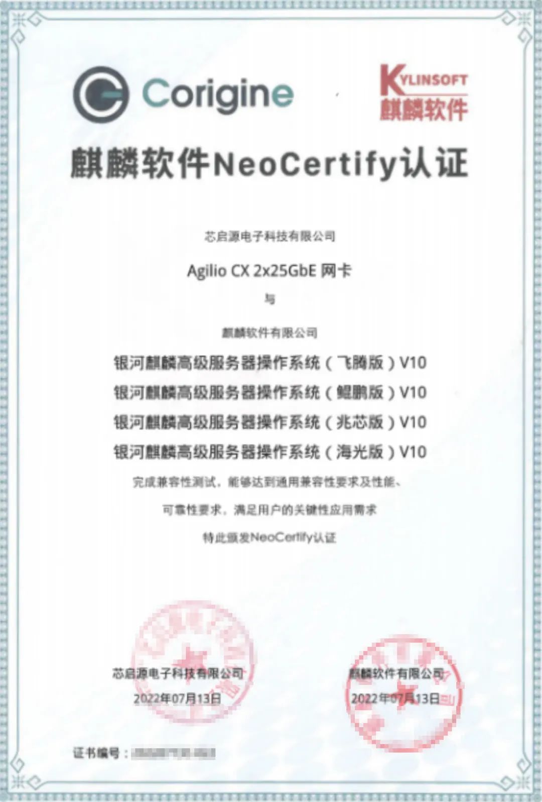 芯启源智能网卡获得麒麟软件NeoCertify认证