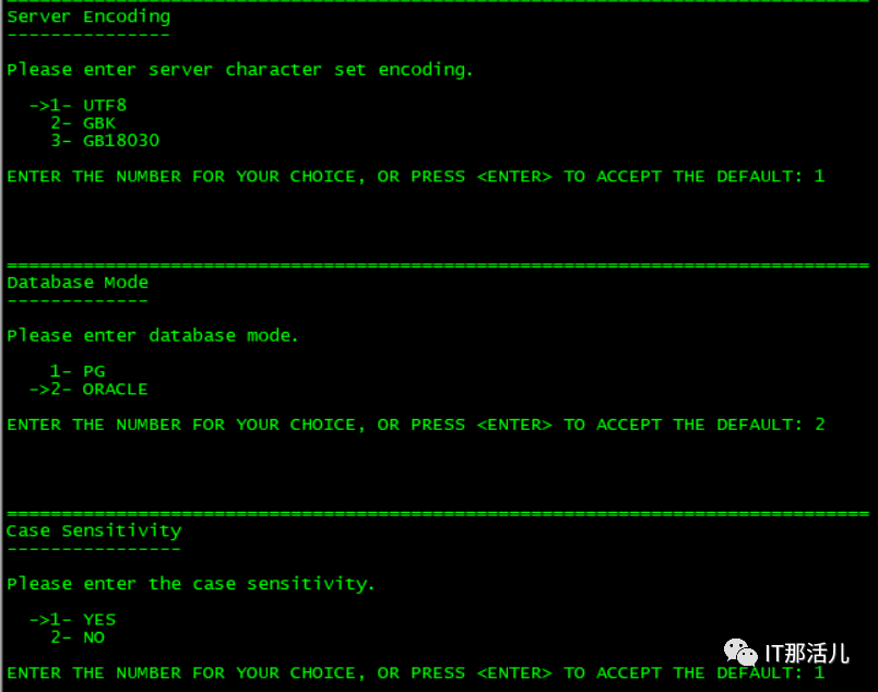 默认账户为:system 密码(自定义) 默认字符集编码为:UTF8(可选GBK、GB18030) 默认数据库兼容模式为:ORACLE(可选PG) 默认大小写敏感为:是(可选否) 默认数据块大小为:8k(可选16k、32k)