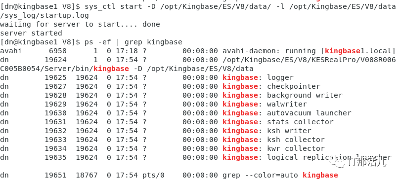 sys_ctl start -D /opt/Kingbase/ES/V8/data/ -l /opt/Kingbase/ES/V8/data/sys_log/startup.log