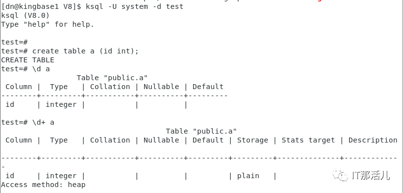 ksql -U system -d test