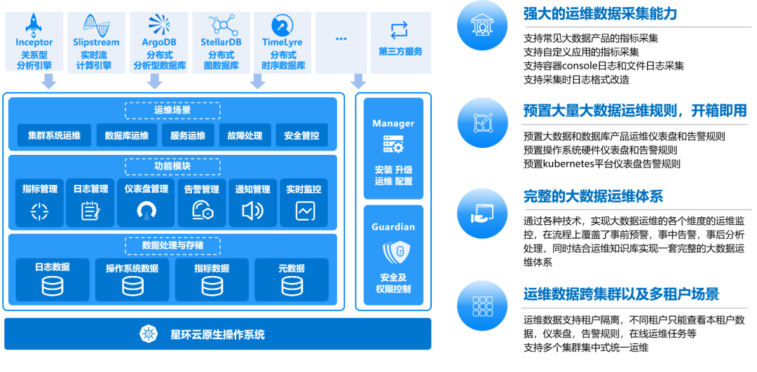 企业在应对业务部门的扩张以及数据融合创新时,通常会针对不同的项目场景引入不同的数据模型以及大数据产品。这些产品和模型为企业解决了海量多源异构数据的存储管理难题,但与此同时,产品服务的可靠性问题也为企业带来了挑战。服务需要持续高效、稳定、可靠的运作,对于企业运维团队来说需要做到有问题及时发现,资源不够及时扩容,出现故障迅速修复,以防止出现服务器长时间宕机、业务长时间中断、数据丢失等问题。