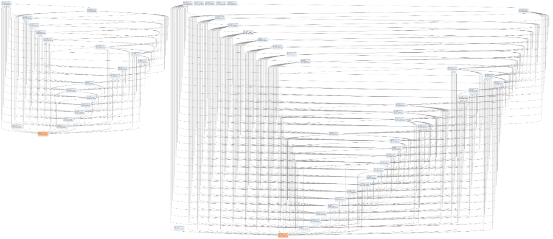 如下图所示,Aquila Insight提供给了用户一个可视化的事务监控图,每个方块代表一个PLSQL,其中a指向b,则表示SQL a涉及的事务在等待SQL b的事务。两个橙色的节点表示导致整个SQL事务等待的关键SQL,由于耗时较久因此后面的事务被阻塞,用户仅需针对这两个SQL进行优化,即可解决其他事务阻塞的问题。