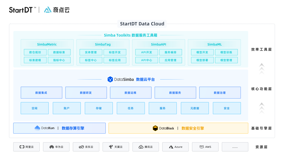 • 云原生:数据云平台具备微服务、容器化编排、存算分离、CI/CD等云原生技术特性,优化架构,为企业降低数据应用在云上的存算成本,提升研发效率。