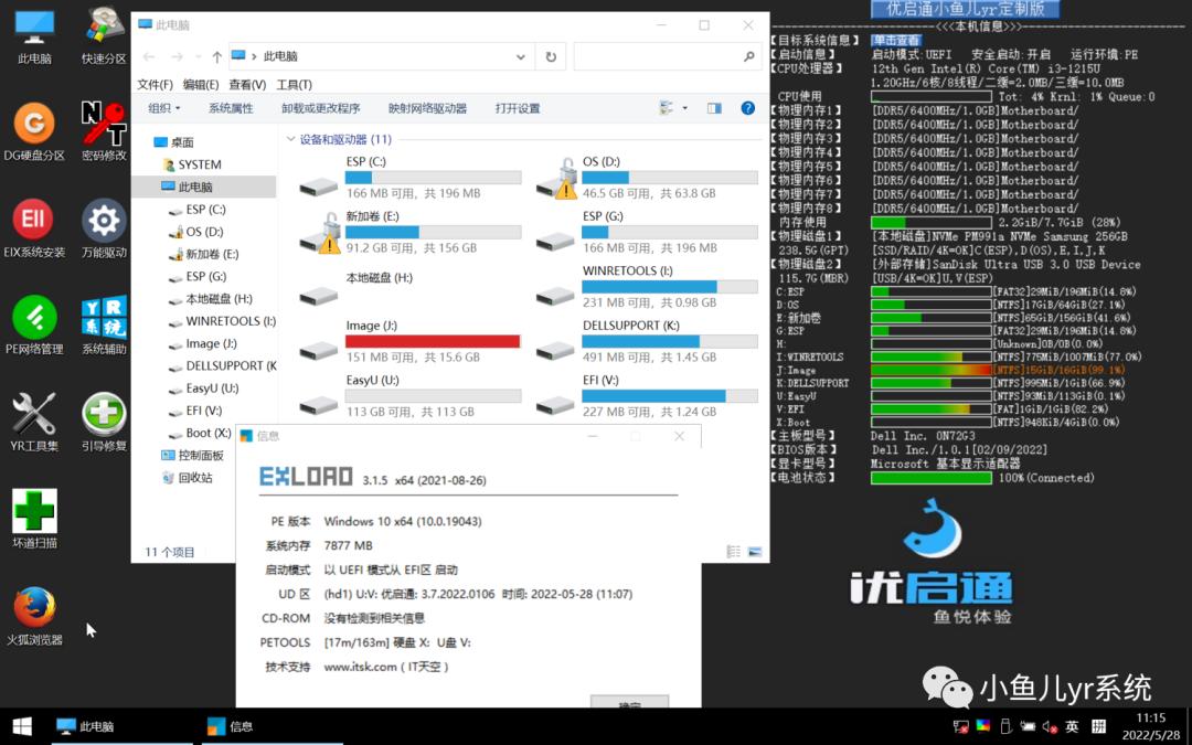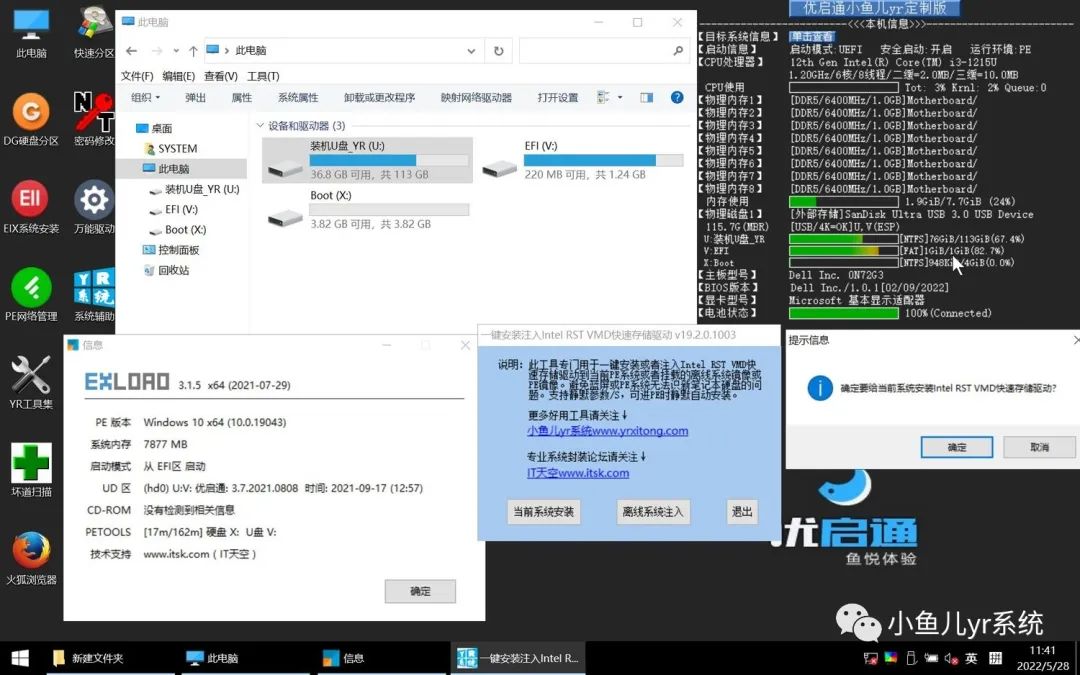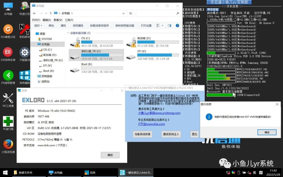 老版本的优启通定制(设置的/s参数,进入PE系统静默安装)后在intel十二代笔记本里测试进入PE自动识别本地磁盘的效果(注意:新版本优启通IT天空官方已经注入了快速存储驱动,不存在不能识别本地磁盘的问题了。优启通官方定制教程,请移步https://www.itsk.com/thread-366601-1-1.html)