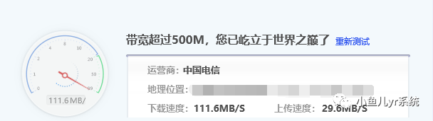 如果预算充足,则可以更换千兆路由器,选择第二种方式桥接的模式,更为稳定,开直播,打游戏,不在话下,又喜欢折腾,家里智能设备多,当然是选择桥接模式了。小编则选择了第一种方法,虽然路由器是千兆路由,也够用,但是有些需求满足不了,自然得设置成路由模式才能用,并且设置后网速达到了真正千兆的水平,下行速度比起桥接模式快了接近30MB左右。1000/8=125MB/s,千兆网络下行的满带宽是125MB/s,路由器不太行的情况下,下行速度111.6MB也够用啦。