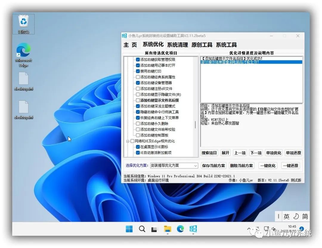 小鱼儿yr系统封装优化设置辅助工具V2.11.2正式版将定于2022年8月15日20:00-21:00,在微信公众号限时1小时开放下载,到时候请在微信公众号回复【小鱼儿yr系统封装优化设置辅助工具最新版】即可获取最新版本下载地址,然后第二天仍然在IT天空更新。