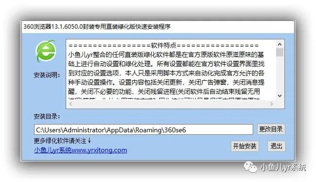 360浏览器封装专用直装绿化版所有解释权归爱奇艺公司所有,并由小鱼儿yr进行整合绿化。小鱼儿yr整合的任何直装版绿化软件都是在官方原版软件原滋原味的基础上进行自动设置和绿化处理。所有设置都能在官方软件设置界面里找到对应的设置选项,本人只是采用脚本方式来自动化完成官方允许的各种手动设置操作。设置内容包括关闭更新,关闭广告弹窗,关闭消息提醒,关闭不必要的功能,关闭残留进程(关闭软件后自动结束残留无用进程)等等。为什么用直装方式?因为这样可以尽量保证官网原滋原味的安装过程,再进行官方允许范围内的优化设置等等,一般不会有什么异常BUG,减少不必要的问题和错误。还有个重要目的是为了避免封装系统安装此软件时或者直接给客户安装此软件时频繁的手动设置软件而浪费不必要的时间。所以直装绿化版更适合封装系统时提前安装到系统里面,或者卖了新机器给客户时进行安装,这样可以减少不必要的重复设置操作时间。