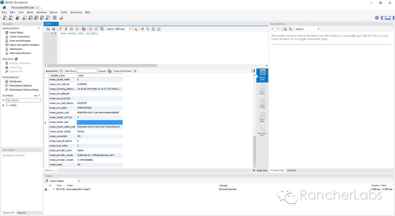 以上PXC集群运行于容器之上并被Rancher平台管理,其中的具体实现细节较多,因为我们需要这样的数据库集群满足弹性伸缩的要求,举例来说也就是可以动态的将集群节点数由3个增加至更多,那么必然每个节点的配置文件需要动态的进行更新,要做到这一点,我们可以结合confd与Rancher的metadata元数据服务来实现,当然这里涉及到数据库集群专有的技术,giddyup专有工具的结合也是必不可少的选择。https://github.com/Flowman/docker-pxc