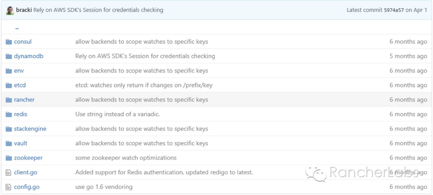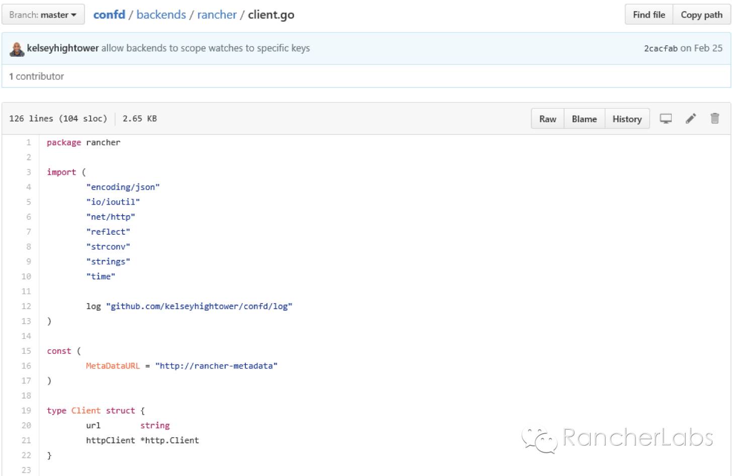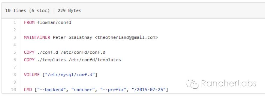 https://github.com/Flowman/docker-pxc-confdhttps://github.com/Flowman/docker-pxc-clustercheckhttps://github.com/cloudnautique/giddyup在数据库集群服务的启动脚本https://github.com/Flowman/docker-pxc/blob/master/start_pxc里我们使用了giddyup工具,其中比较重要的命令有以下项:获取集群节点成员IP列表,请参照本篇前面章节中my.cnf文件中提及的wsrep_cluster_address=gcomm:// …探测当前容器节点是否属于数据库集群的bootstrap角色(leader)https://github.com/kelseyhightower/confd 它对rancher提供了很好的支持,能够与Rancher的metadata元数据服务紧密结合:如何与元数据结合?confd有两个重要文件,一个是模板文件,一个是配置文件,其执行过程就是从backends对象例如Rancher的metadata获取数据,然后将其更新至真正被服务调用的配置文件中去: