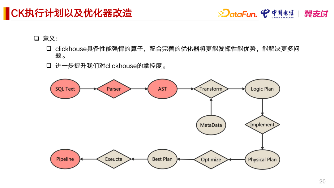 ClickHouse 最大的短板在于执行计划及优化器模块。V20.4 以前,处理流程基本没有执行计划及优化器的概念。