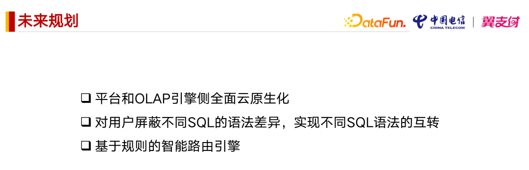 OLAP 引擎侧的全面原生化,像 ClickHouse 可能他自己有自己的存储,要做原生化可能还需要一些改造,我们规划去做一些尝试。
