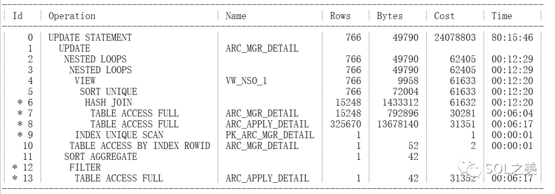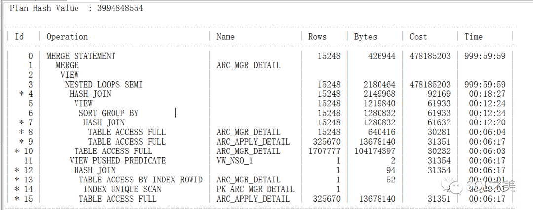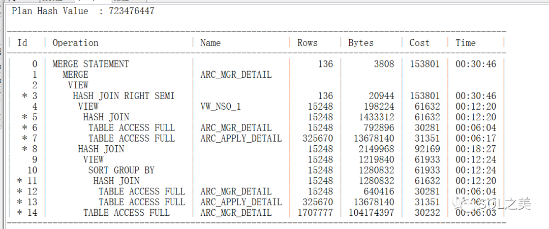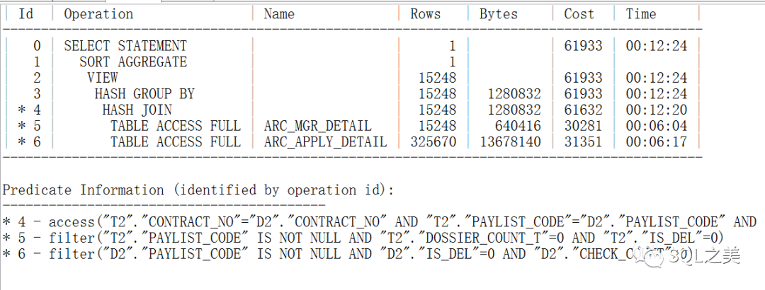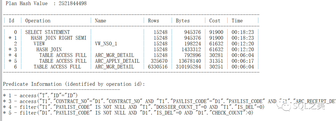 这一步计算出现的性能问题,可以看到他没有谓词信息,那么要看它到底对应SQL哪一步,我们就需要明白整体SQL的表检索链接顺序: