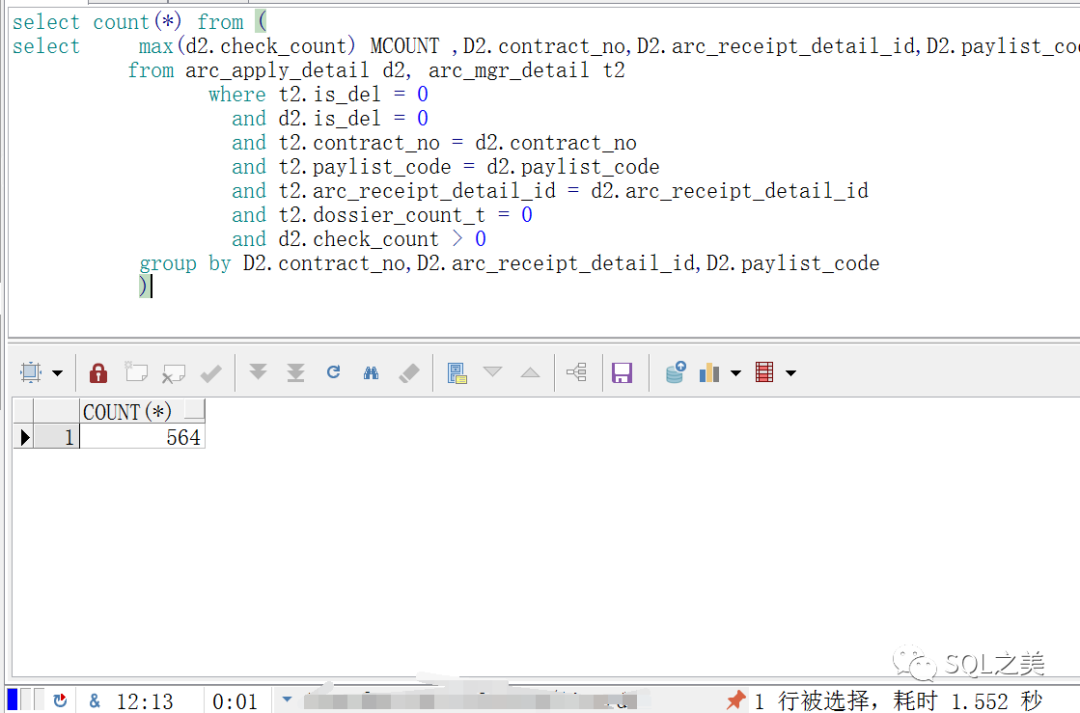 下面对应的条件也只有564条,拆开来每个部分速度都很快。