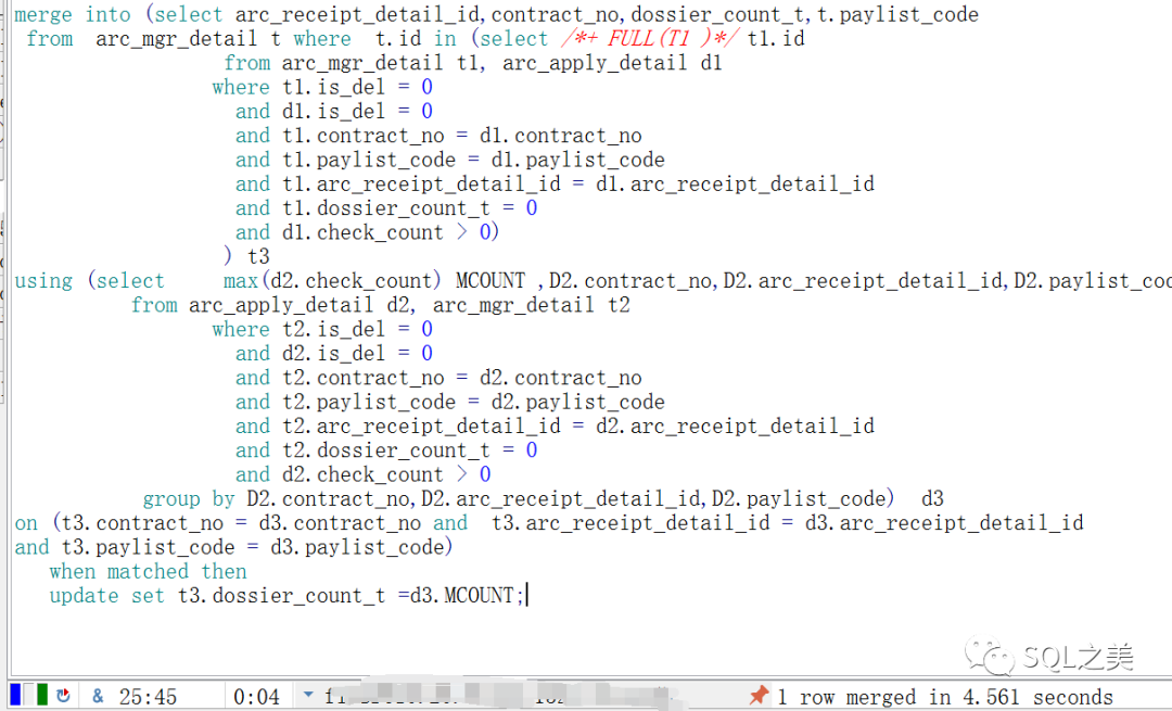 之前记得在公司SQL培训中多次说过,关联更新百万级以下数据,update直接改成merge into写法就好了,说干就干