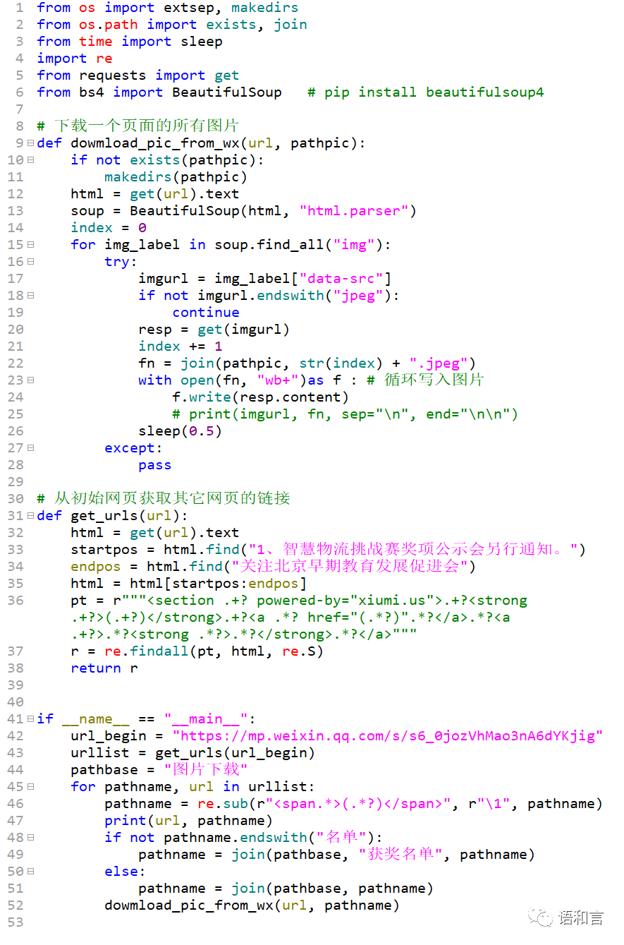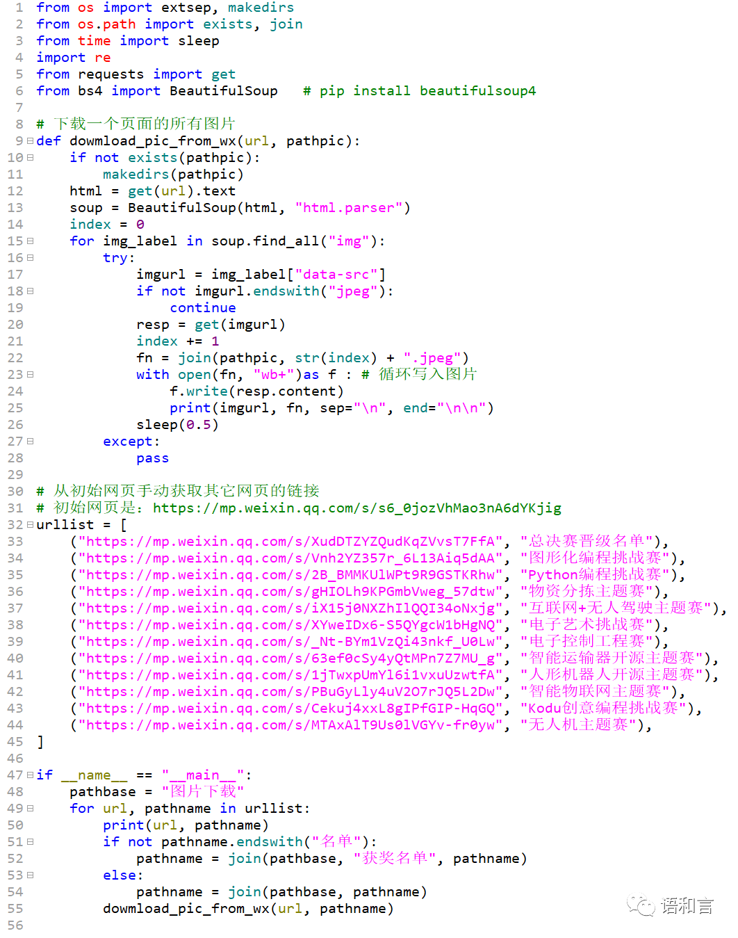思路一:手动获取12个页面的链接和名单类型,然后调用自定义的图片下载函数dowmload_pic_from_wx。