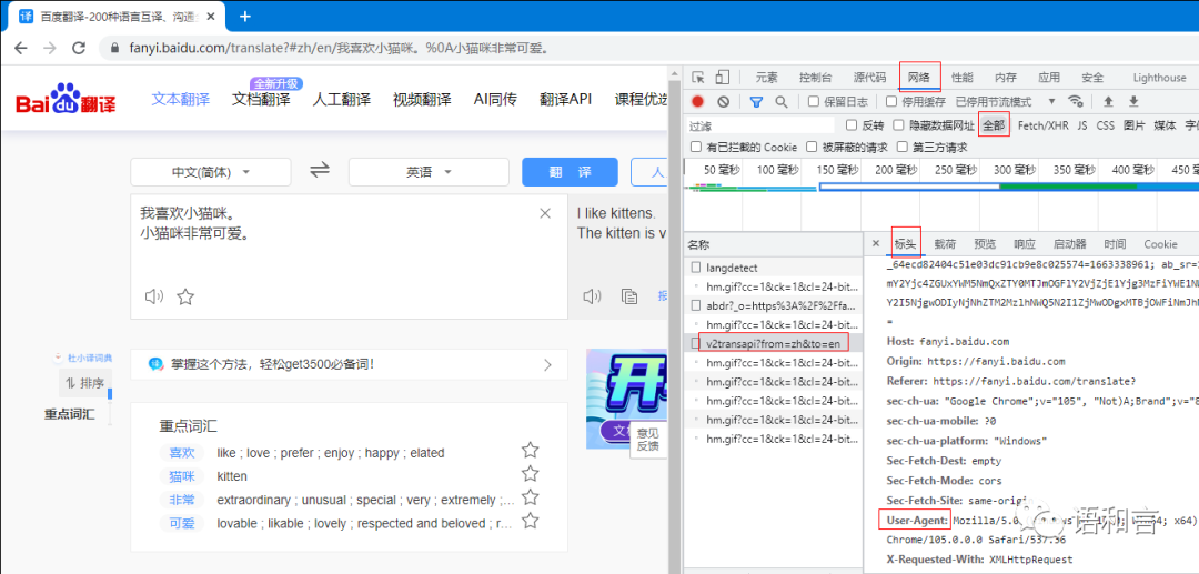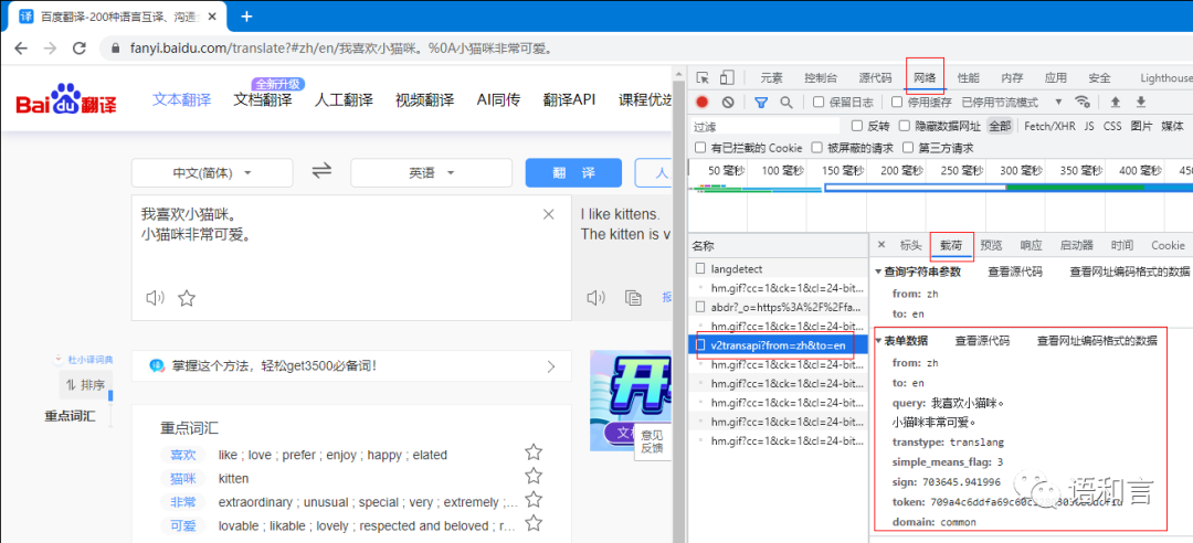 当时就想能否模仿这个思路写一个调用百度翻译的Python程序呢?结果发现构造网址没有问题,构造的网址在浏览器中打开就能在浏览器中看到翻译的结果 。