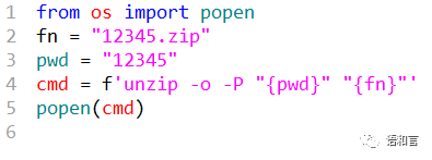 上面这段代码可以成功解压缩 Zip 2.0传统加密(CRC32)算法加密生成的12345.zip, 参数-P后面跟密码,不要有空格。