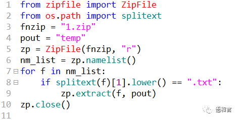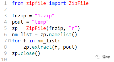 这段代码是把当前目录下的zip文件 1.zip 中的全部内容解压到当前目录。如果是解压到指定目录,我们可以用如下代码: