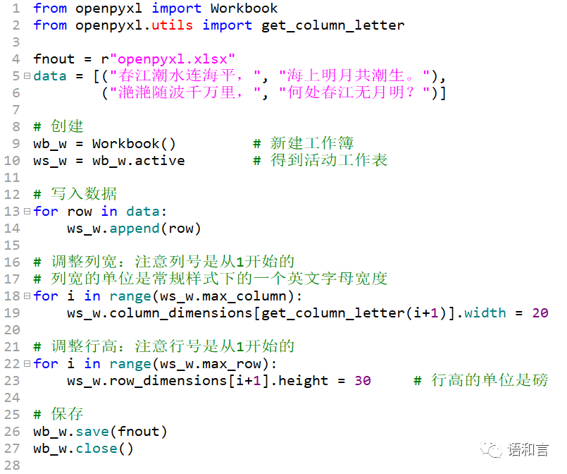 四、用openpyxl生成Excel文件并调整行高和列宽