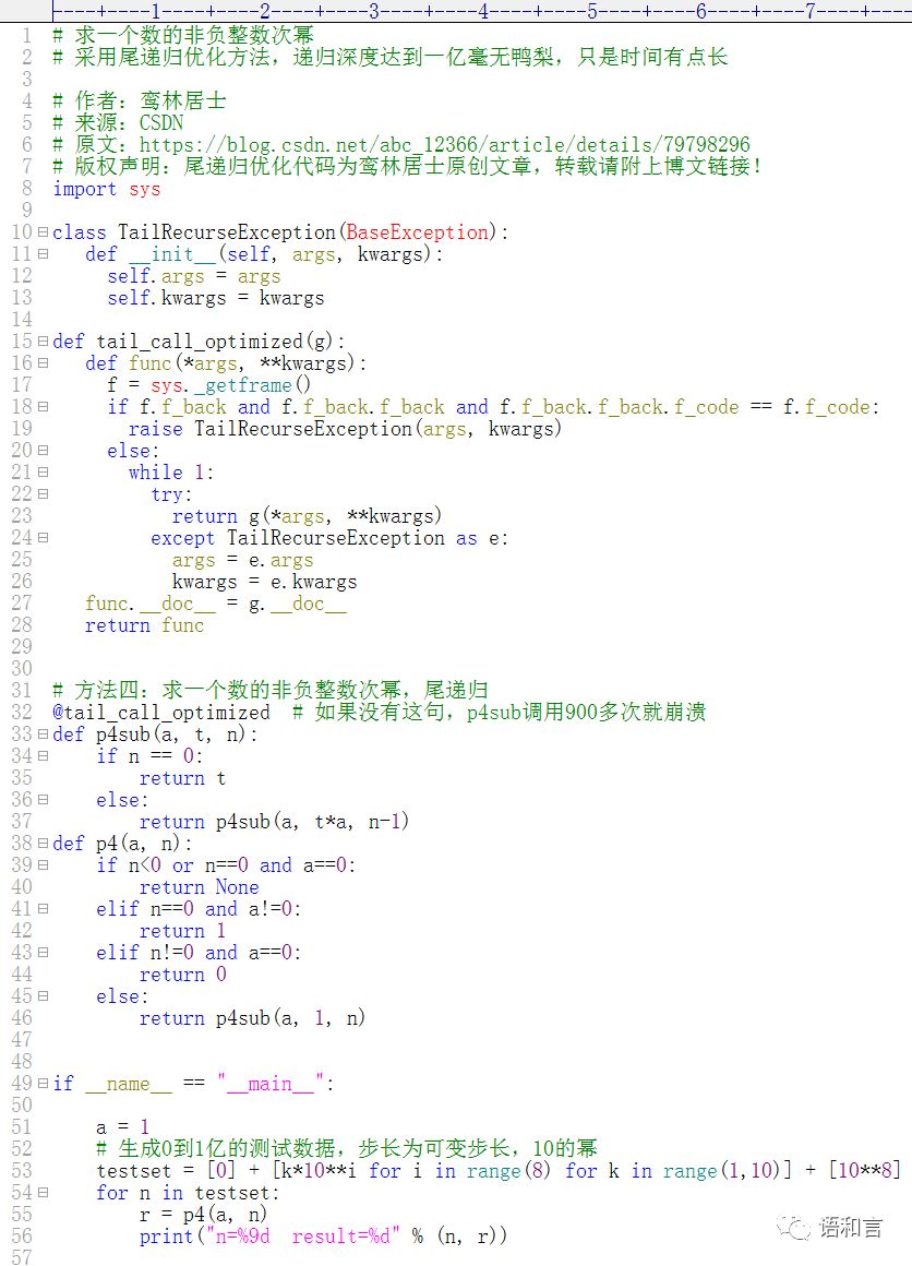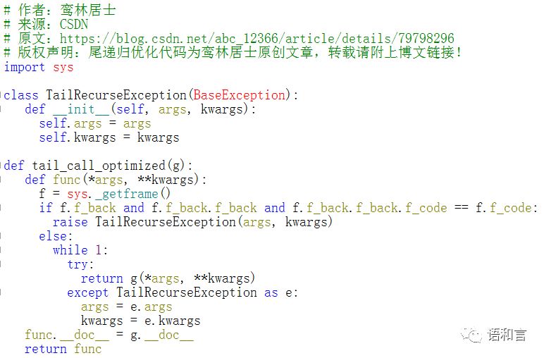 这一部分是抄作业,感谢鸾林居士在CSDN上给出的一段优化尾递归的装饰器代码。这段代码的下载地址是: