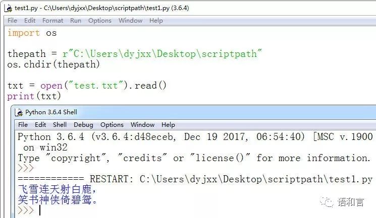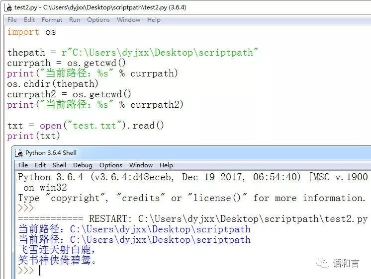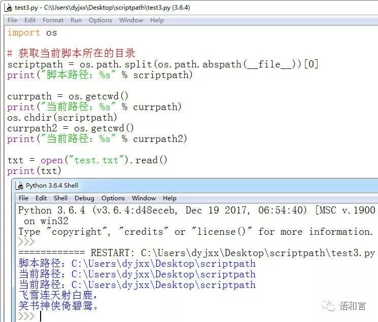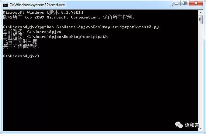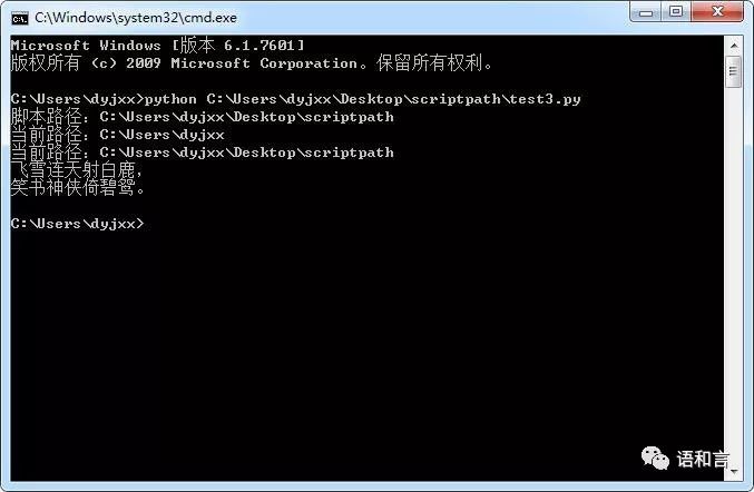 我们发现,如果Python脚本在IDLE中运行,那么,当前目录默认就是脚本所在的目录,如果是在命令行中运行,那么,Python中的当前目录就是cmd窗口中运行DOS命令的当前目录。在我们用命令强制将 C:\Users\dyjxx\Desktop\scriptpath 设置为当前目录之后,当前目录就变成了我们所希望的值。