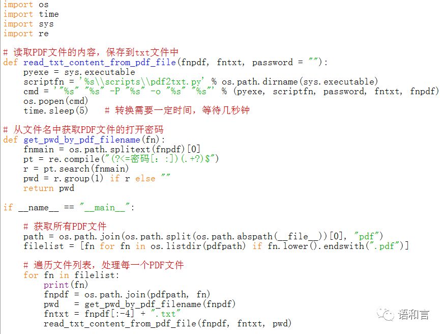 本代码比董付国老师的代码多了处理PDF密码的功能。如果PDF文件是加密的,则代码对PDF文件名有个要求:需要在主文件名的后半部分给出密码,文件名格式要求如下: