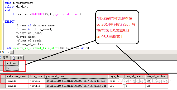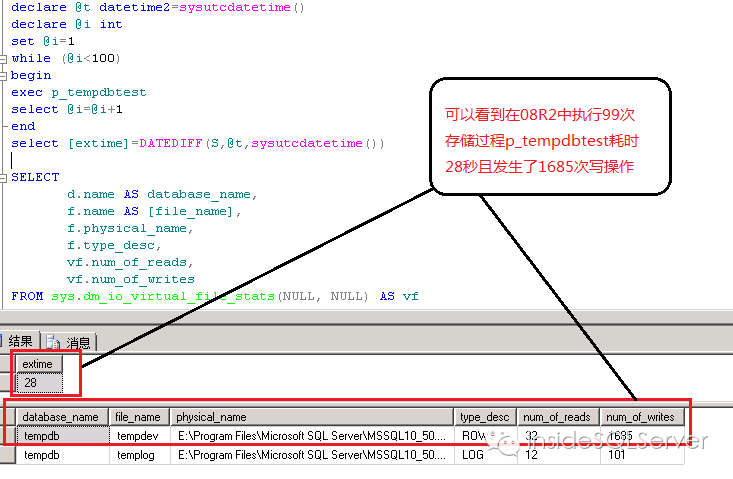 注:测试前请重启下sql server实例,使得tempdb计数尽量准确