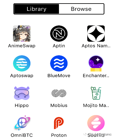 此外,Martian Wallet在拓展界面提供了合作项目的导入链接。用户可直接通过钱包进入AnimeSwap(DEX)、Aptin(借贷协议)、BlueMove(NFT交易平台)等交互项目网站。