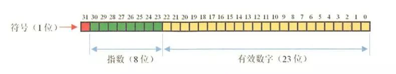 float 符号位(1bit) 指数(8 bit) 尾数(23 bit)