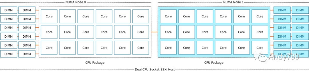 虚拟机管理程序是一个非常动态的环境。CPU 调度程序必须处理各种工作负载模式,并且存在负载关联和负载同步性等工作负载模式。使用负载关联时,计划程序必须处理由不同计算机上运行的工作负载之间的关系生成的负载峰值。NUMA 计划程序每 2 秒检查一次 CPU 负载,以捕获这些模式。例如,具有前端 VM 的应用程序与数据库通信。随着负载同步性工作负载趋势在一起,每天早上启动多个桌面的 VDI 环境将导致持续的负载峰值。因此,NUMA 负载平衡器可能会决定最好在系统中移动一些 NUMA 客户端。对于本文来说,深入了解 NUMA 负载平衡算法的详细信息太深入了。我在 NUMA 深入探讨中介绍了最多的内容。但要了解的关键是,如果有必要移动 NUMA 客户端,它将移动 NUMA 客户端,但不会考虑距离。对于系统来说,尝试将是最明智的做法,但对于 VM 来说,它可能并不总是最好的。