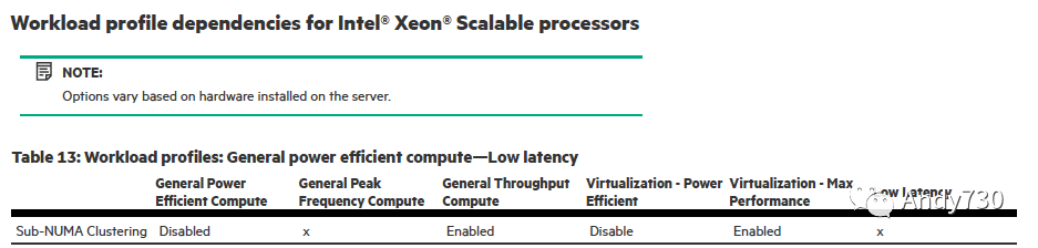 我为什么要说这个话?我发现 HP 通过工作负载配置文件“虚拟化 – 最大性能”和“常规吞吐量计算”启用了 SNC。