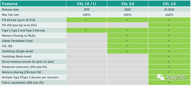 图2:各代CXL功能