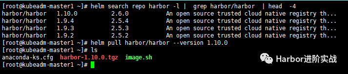 $ helm search repo harbor -l | grep harbor/harbor | head -4