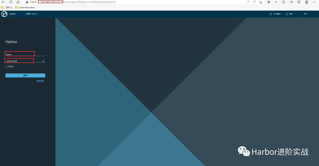 在浏览器输入刚才配置的地址访问Harbor UI管理界面。