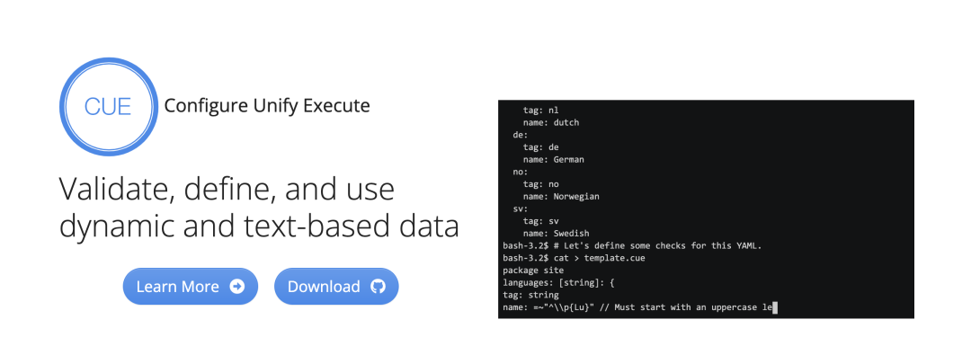 更多关于 CUE 的介绍,可以通过 官方文档 和 定义 了解过多,这里就不展开了。