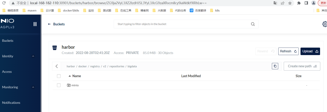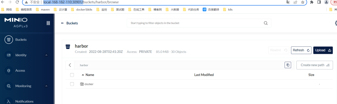 成查看minio的harbor bucket是否存在docker目录。如果存在说明成。