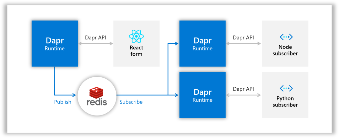 从上面的示例可以看出 Dapr 中使用发布订阅模式进行开发就完全变成了面向
