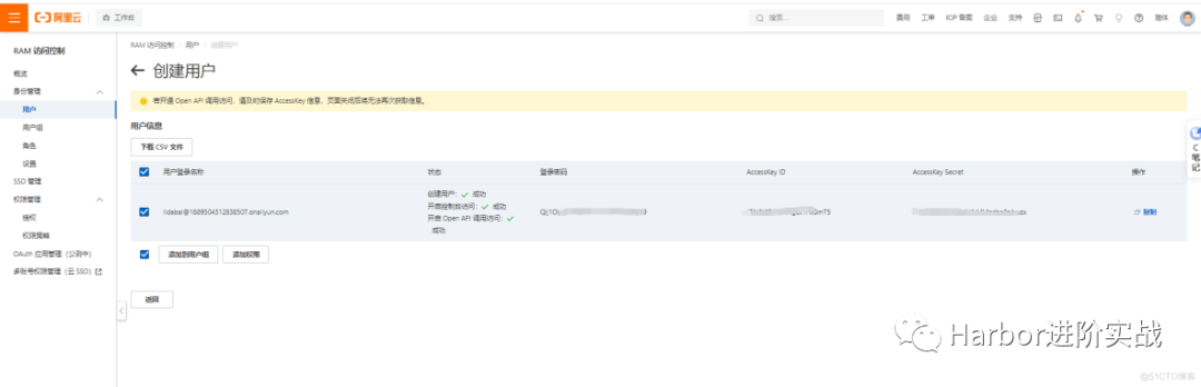 【登录阿里云】—【首页】—【访问控制】—【创建RAM用户】