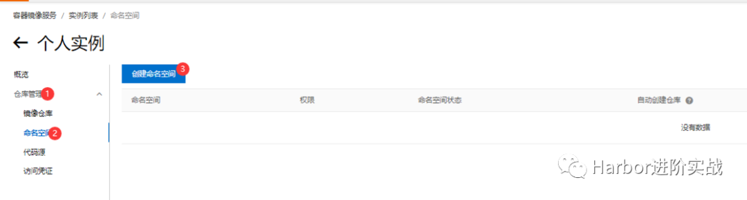 创建项目前需要先创建命名空间。一个账号最多可以创建 3 个命名空间。定义您的镜像仓库命名空间,设置后不可修改。长度为2-30位,可填写小写英文字母、数字,可使用的分隔符包括“_”、“-”(分隔符不能在首位或末位)
