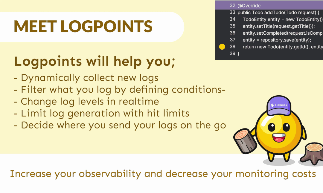 操作(日志点和跟踪点)放入代码中,Sidekick