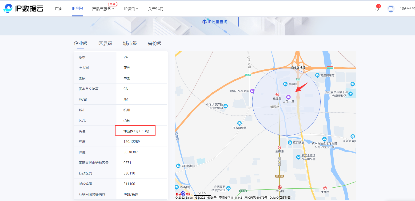 另外查询国内外IP地址,IP数据云查询,国外IP可以到城市,国内可查到街道。